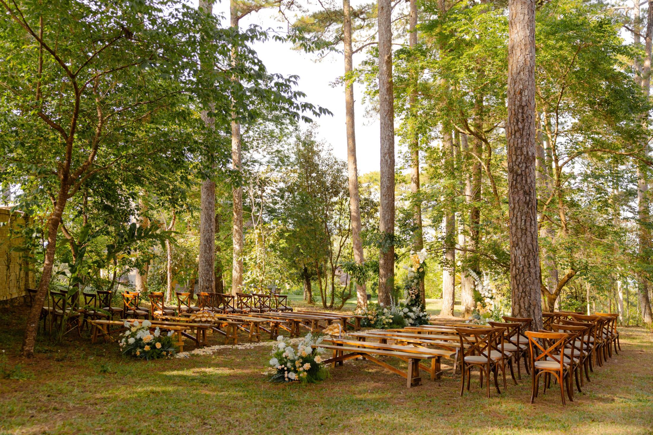 소나무 숲 속에서 서약을 교환하거나 당사의 개별 빌라 중 하나의 아늑한 분위기에서 진행할 수 있습니다. 예식 연습 저녁식사부터 결혼식 접수까지, 당사 팀은 당신의 결혼식 준비를 맞춤화하여 평생의 추억을 만들어줄 것입니다