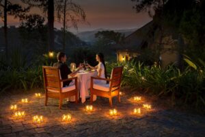 Trong tiết trời se lạnh và khung cảnh nên thơ của Đà Lạt, không gì lãng mạn hơn một bữa tối riêng tư dưới ánh nến được chuẩn bị dành riêng cho hai người. Tại Ana Mandara Đà Lạt, các cặp đôi có thể lựa chọn dùng bữa tại phòng riêng hoặc trong không gian hầm rượu ấm cúng, mang đậm dấu ấn châu Âu cổ điển.